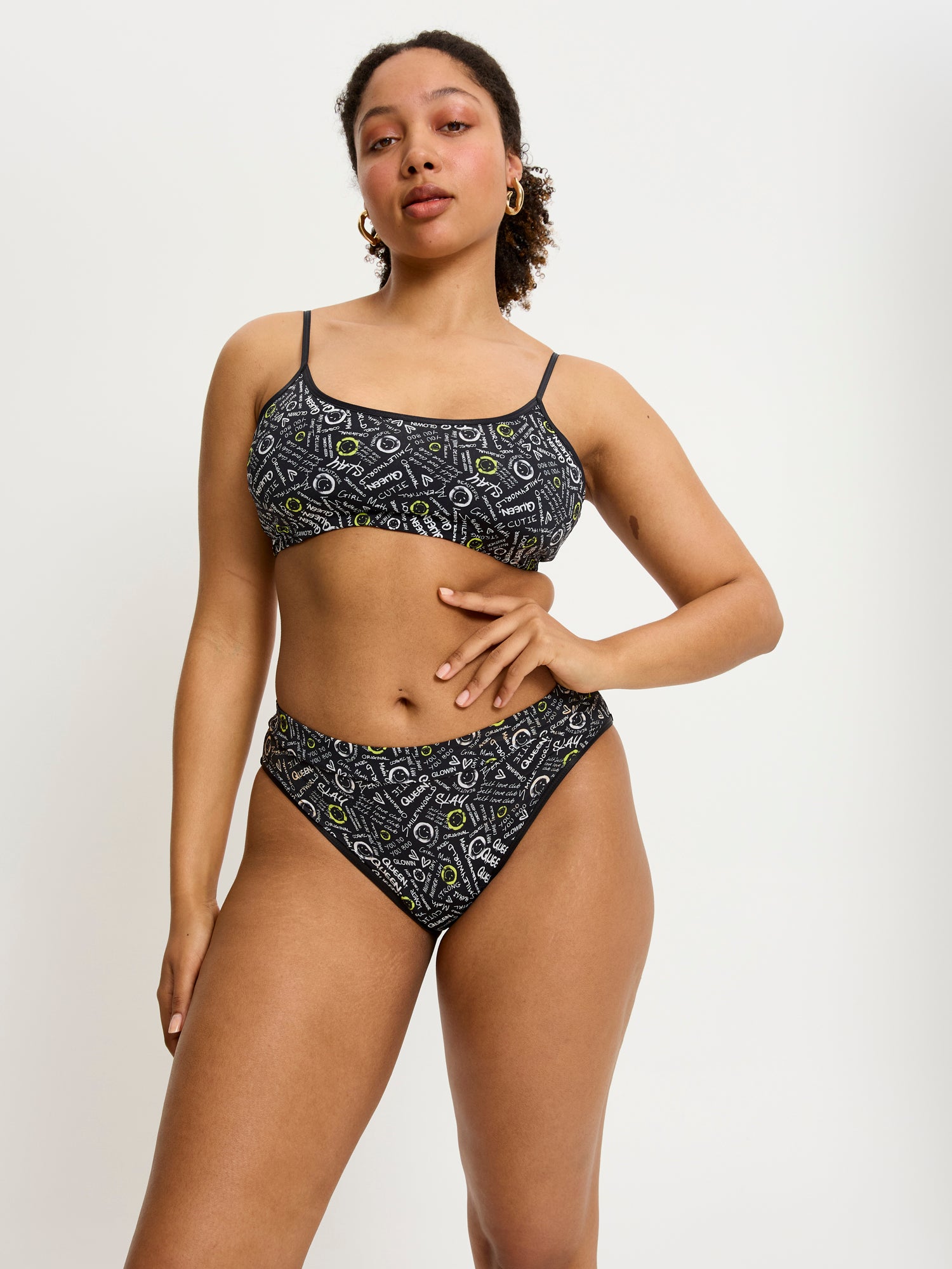 Get set to slay in our SmileyWorld® | Modibodi Bralette. Sleek and minimal, the soft recycled fabric is soft to touch and has a four-way stretch for maximum comfort. Fully lined, it gives light support for all-day comfort, along with adjustable bra straps and hook-and-eye back closure. In our exclusive SmileyWorld® | Modibodi ‘Self Love Club’ print, it’s giving style and positive vibes.